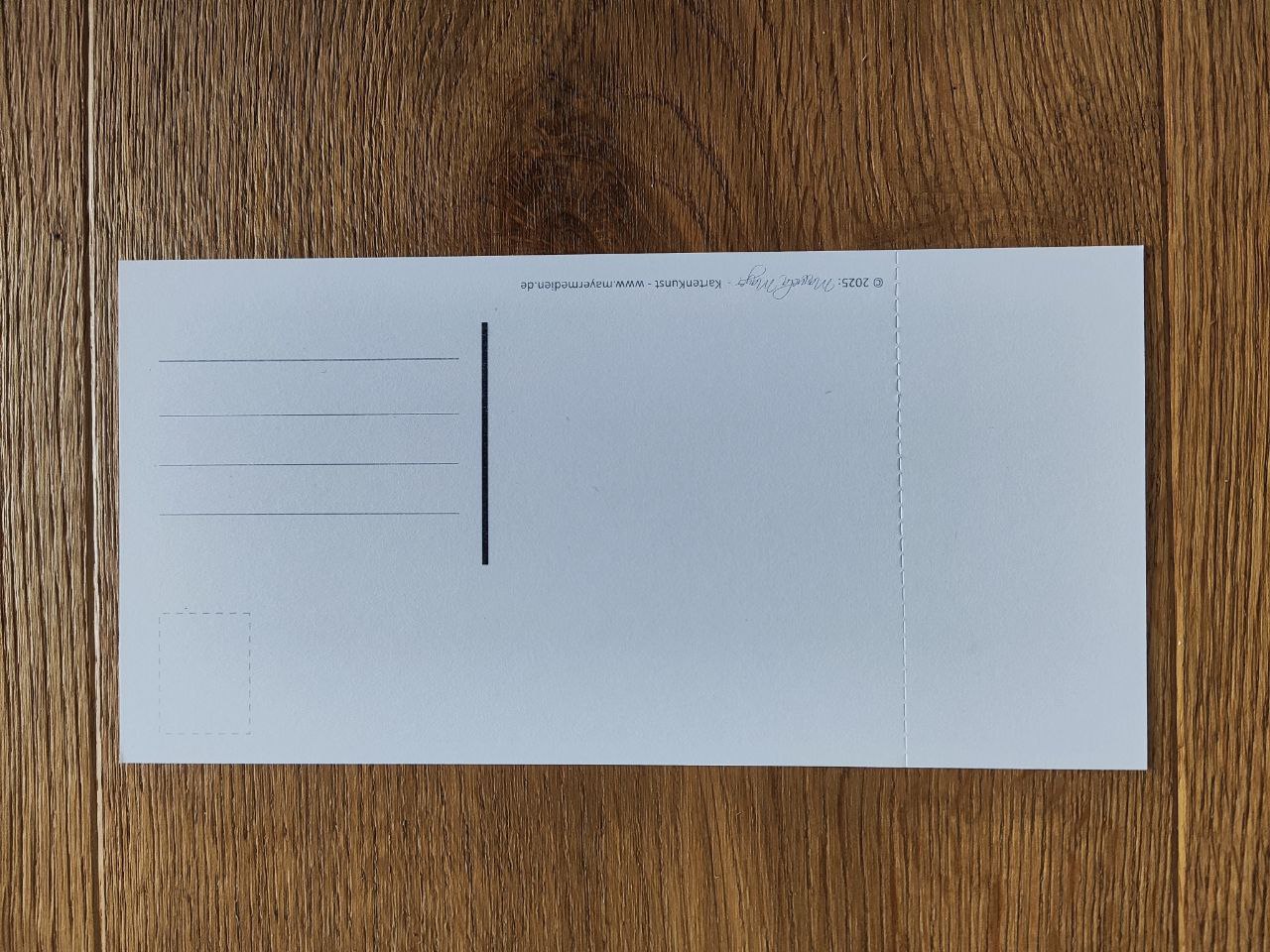 Postkarten-Auftellkalender mit perforiertem Kalenderblatt zum Abtrennen.